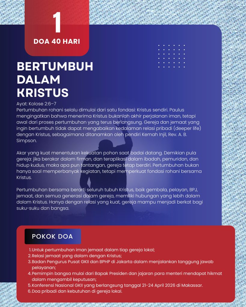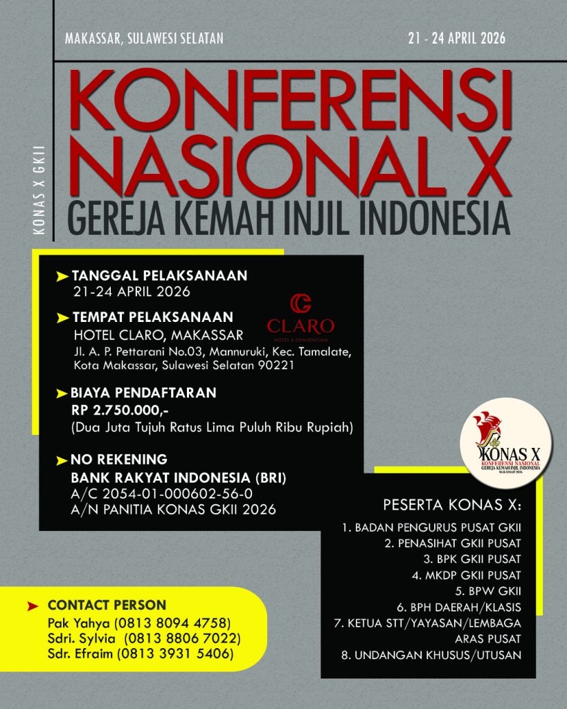 Tema: Mataku telah melihat keselamatan yang datang dari-Mu (Lukas 2:30) Kepada seluruh keluarga besar GKII:Shalom, salam damai sejahtera bagi kita semua. Kembali di tahun 2024