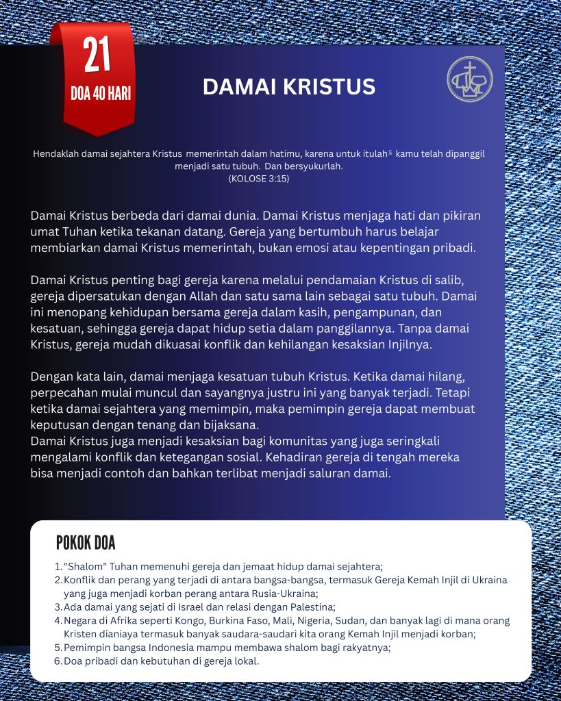MINGGU ADVEN KEDUA (8 DESEMBER 2024)TEMA: Mataku Telah Melihat Damai Sejahtera(Yes.9:6-7; Yoh. 16:33) UNDANGAN MEMPERSIAPKAN DIRI MENYAMBUT NATAL:Bersiaplah untuk menanggapi Tuhan dengan mengidentifikasi area-area dalam